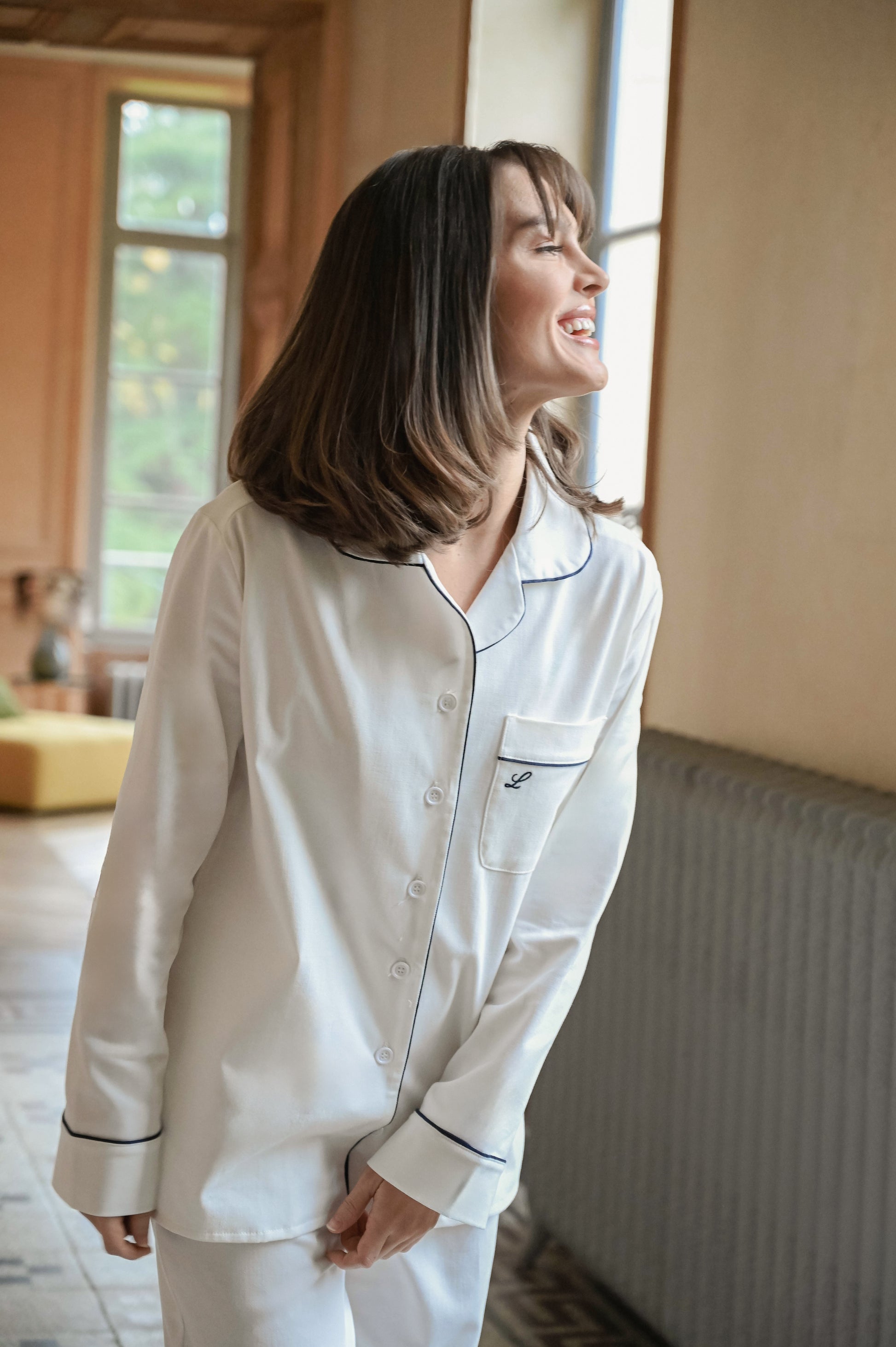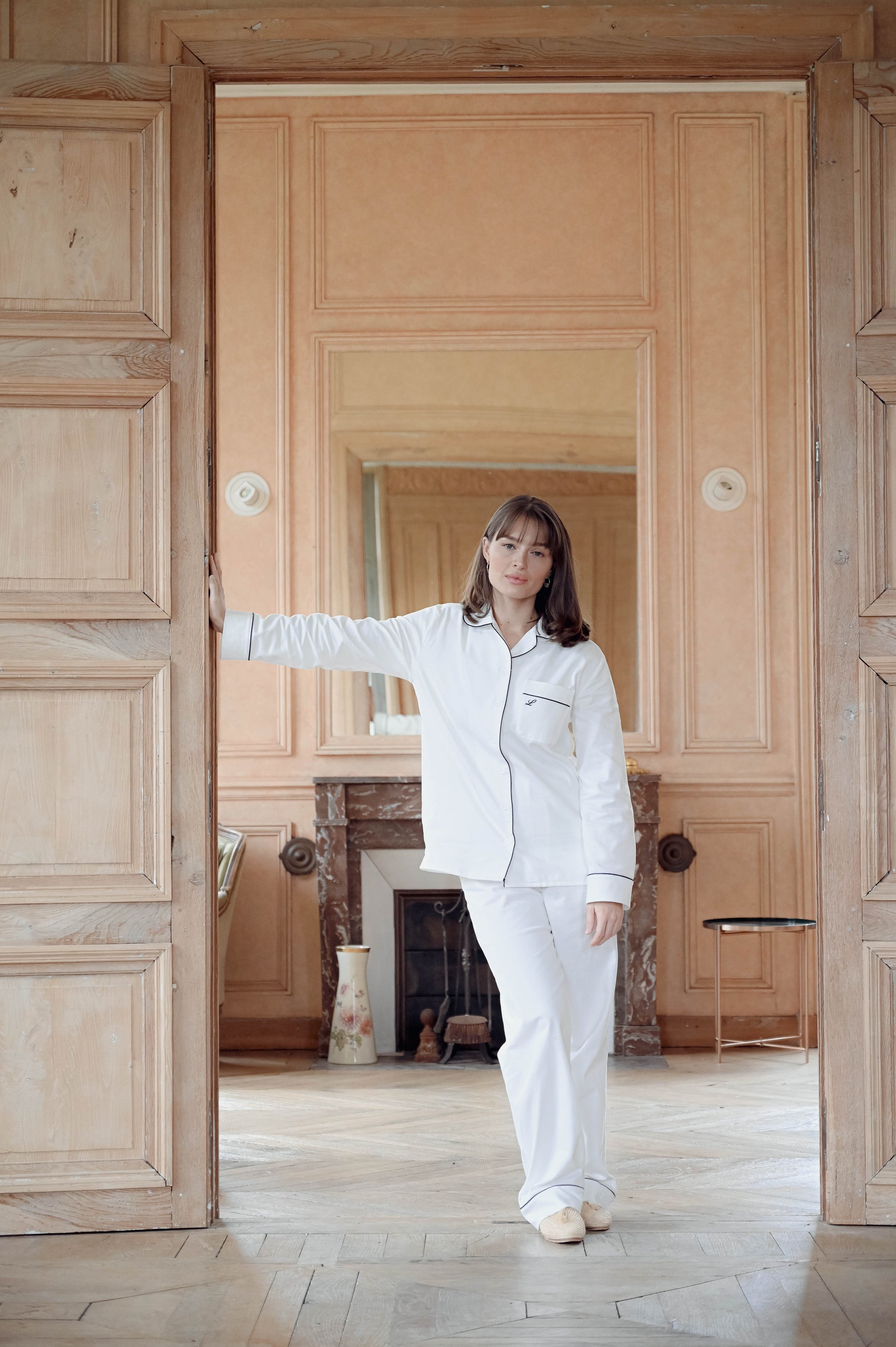 White will always be a synonym of peace and is the colour I always incorporate into the spaces of my home and my interior design projects. Handcrafted with care in Portugal and designed in Paris, these pajamas are versatile and comfortable for both home relaxation and everyday wear. They are made from 100% certified cotton and hold the BCI certification. Additionally, they offer the option of personalization with a name, making each pajama truly unique.